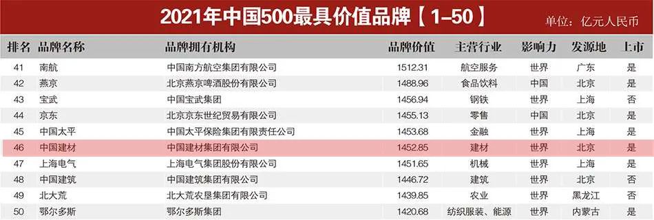 2021ÄêÖйú500×î¾ß¼ÛÖµÆ·ÅÆ£ºµÚ46λ