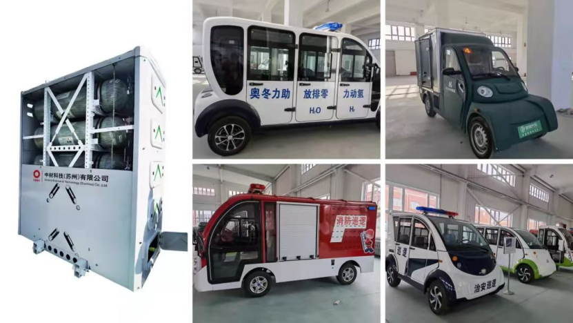 中材科技储氢气瓶的氢燃料电池汽车已陆续批量效劳北京延庆和张家口两个赛区,,,,,,,助力2022冬奥会。。。。。其中送往北京延庆的首批46台氢能通勤大巴所有使用中材科技所属苏州有限生产的165L储氢气瓶组,,,,,,,设计续航里程可达630公里。。。。。