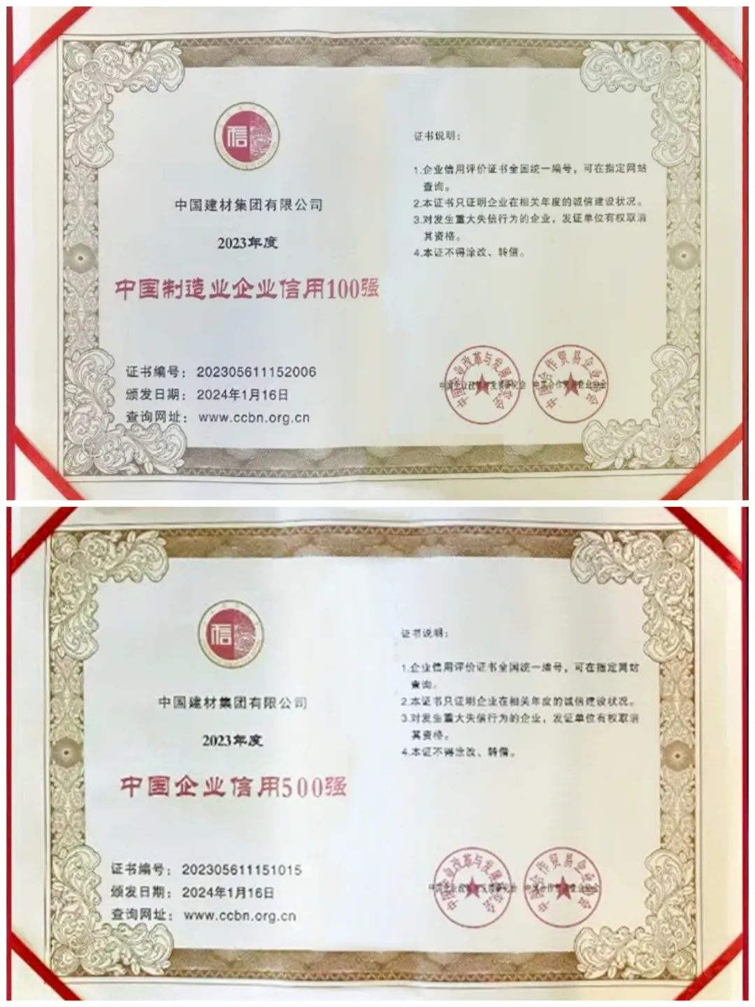 1月21日,,,,,,,,由中国企业刷新与生长研究会、中国相助商业企业协会主理的“2024中国企业信用生长论坛暨第十五届诚信公益盛典”在京举行。。。 。。。。。6686体育 - 流通首播全球篮球足球热门赛事集团划分获评“2023中国企业信用500强”“2023中国制造业企业信用100强”第十五位和第六位,,,,,,,,这也是集团自2017年以来,,,,,,,,一连7年入围该榜单。。。 。。。。。所属中国巨石、中材科技、北新6686体育 - 流畅首播全球篮球足球热门赛事、中材国际入选“2023中国上市公司信用500强”,,,,,,,, 中材国际同时荣获“五星级诚信企业”称呼并作履历交流。。。 。。。。。