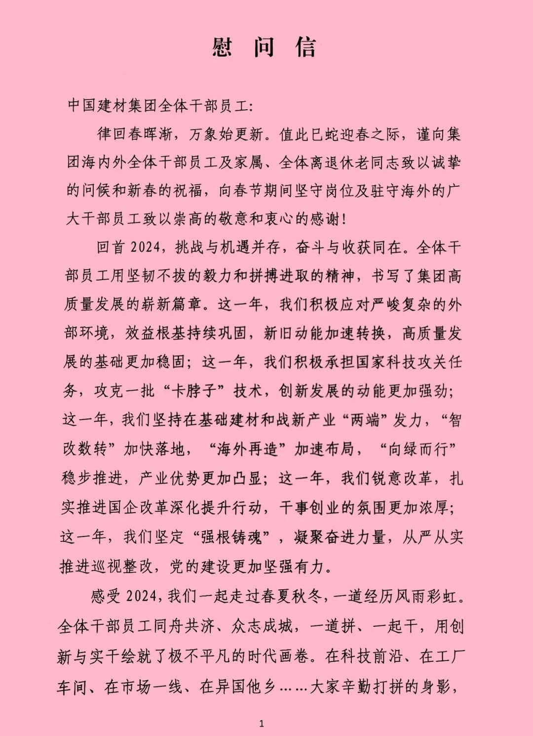 All cadres and employees of China National Building Material (CNBM) Group: