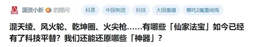 “国资小新”在知乎平台开设话题“有哪些「仙家法宝」现在已经有了科技平替??????我们还能还原哪些「神器」??????”