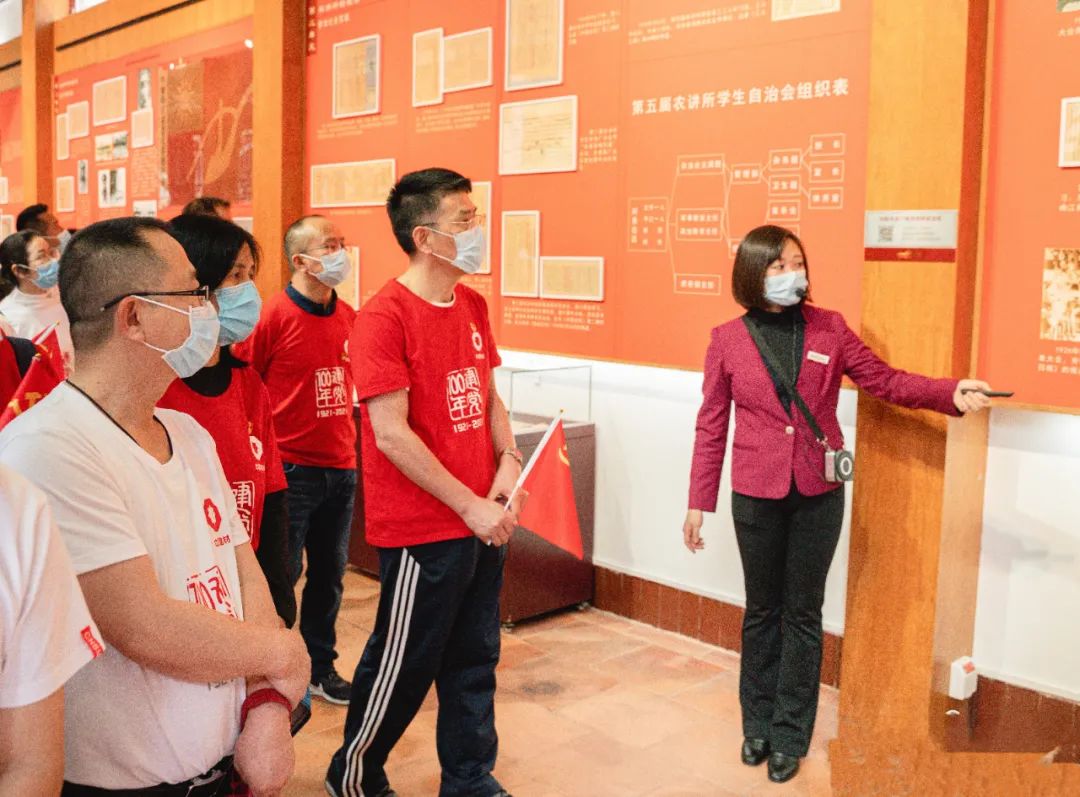 上午10时,,,,,全体职员按划准时间抵达广州市农讲所,,,,,认真听取相识说员的解说。。。。。。。。1926年5月至9月,,,,,毛泽东在这里主理了第六届农民运动讲习所,,,,,深入研究中国农民问题,,,,,作育了大批农民运动干部。。。。。。。。