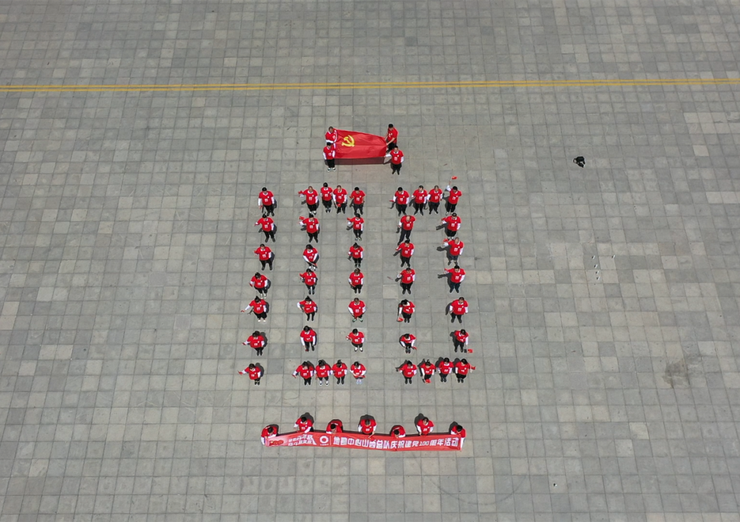 健跑运动竣事后,,,,,,,,在广场摆出100字样,,,,,,,,并齐唱歌曲《没有共产党就没有新中国》,,,,,,,,9名生产一线同志饱含深情的朗诵诗歌《党的礼赞》,,,,,,,,向党的百年诞辰献礼。。 。。。