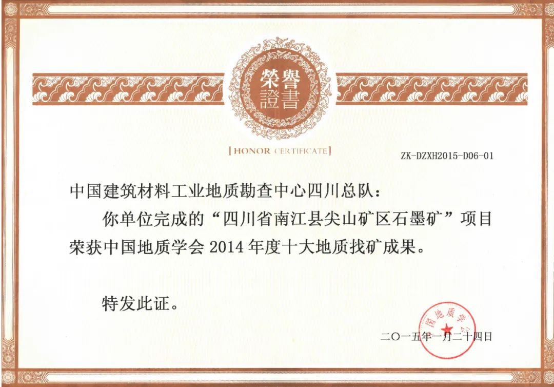 该矿床是秦岭成矿带(四川境)上发明的首例超大型晶质石墨矿床,,,,,,,,为国家资源战略清静起到起劲的包管作用,,,,,,,,进一步增进了我国石墨矿优势矿产资源的国际职位,,,,,,,,同时对革命老区秦巴地区国家级扶贫攻坚和社会经济生长也起到了起劲的增进作用。。。。。。该项目获得2014年中国地质学会十大地质找矿效果和自然资源部“找矿突破战略行动优异地质找矿效果”。。。。。。随后,,,,,,,,总队又陆续在南江庙坪和攀枝花市仁和区三大湾发明2个大型晶质石墨矿床,,,,,,,,共求获石墨矿物资源量约1600万吨。。。。。。