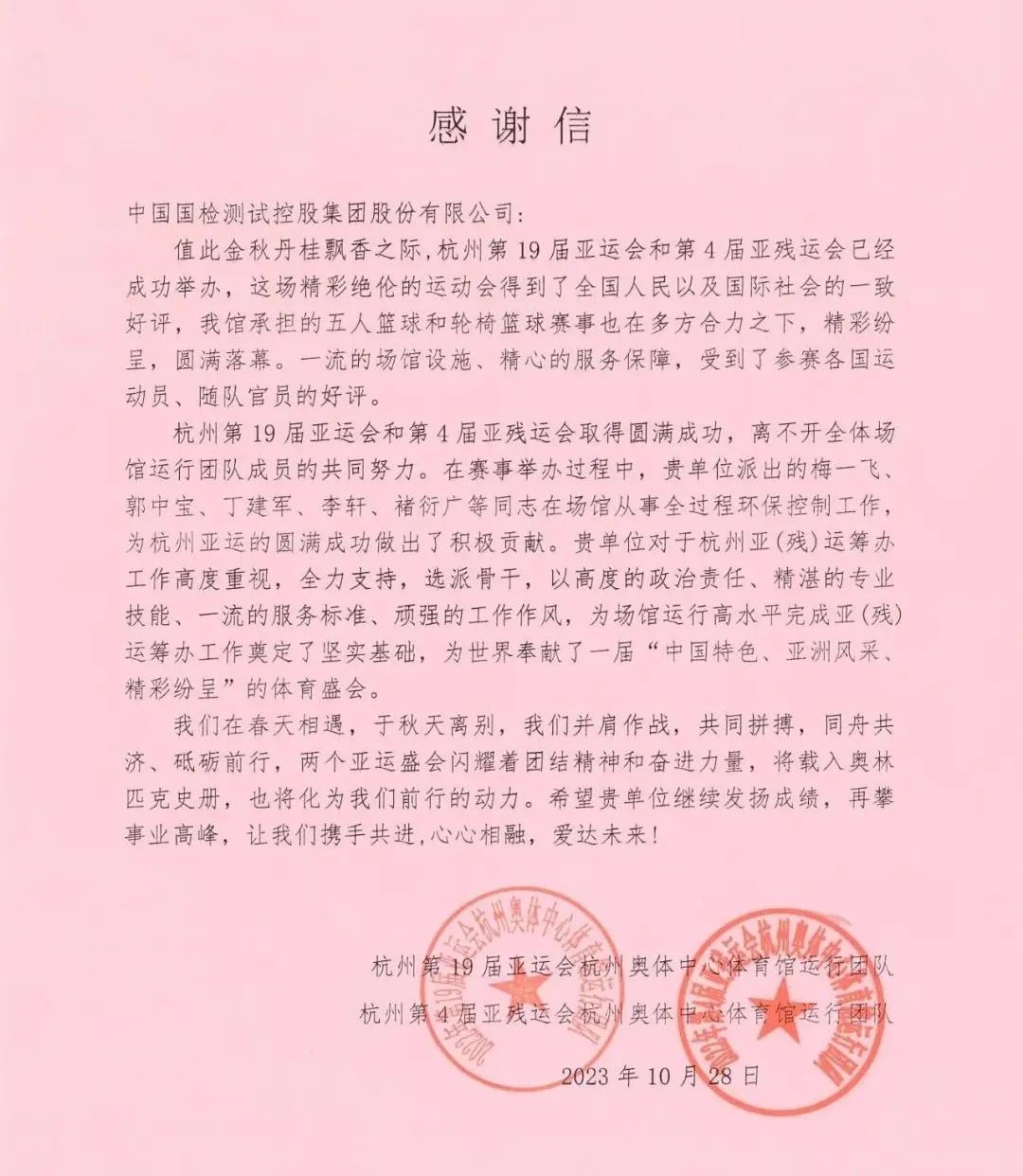 º¼ÖÝÑÇ£¨²Ð£©ÔË»áÏò¹ú¼ì¼¯ÍÅÖÂллÐÅ