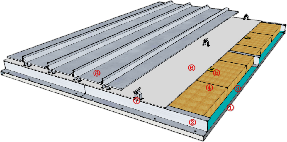 1.¸Öµ×°å 2.¼¸ÐÍéÝÌõ 3.PEĤ¸ôÆø²ã 4.ÑÒÃÞ±£Î²ã