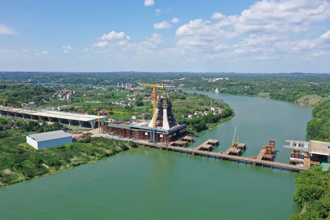 克日,,,,,,天下最宽独塔混淆梁斜拉桥成都工具都会轴线沱江大桥主塔上塔柱乐成合龙。。。。。。。这是成渝地区双城经济圈建设的交通主干路网工程和地区控制性节点工程,,,,,,也是天下上在建的最大宽度独塔混淆梁斜拉桥。。。。。。。项目建成后,,,,,,将助力成渝地区双城经济圈建设。。。。。。。从2023年最先至今,,,,,,天山质料所属西南水泥四川利森为该项目提供混凝土约4000吨。。。。。。。