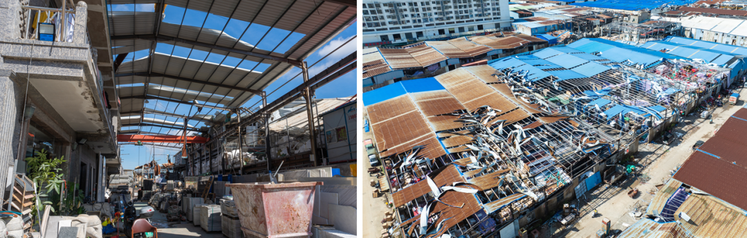 克日,,,,,台风摩羯、贝碧嘉、普拉桑等汹涌而至,,,,,给我国许多地区带来了亘古未有的重大攻击。。。。。。。台风肆虐之下,,,,,许多修建受损严重,,,,,但也有相当一部分的修建围护系统经受住了大考,,,,,大跨度屋面系统在众多大型修建中的抗风性能也成磷器人关注的焦点。。。。。。。