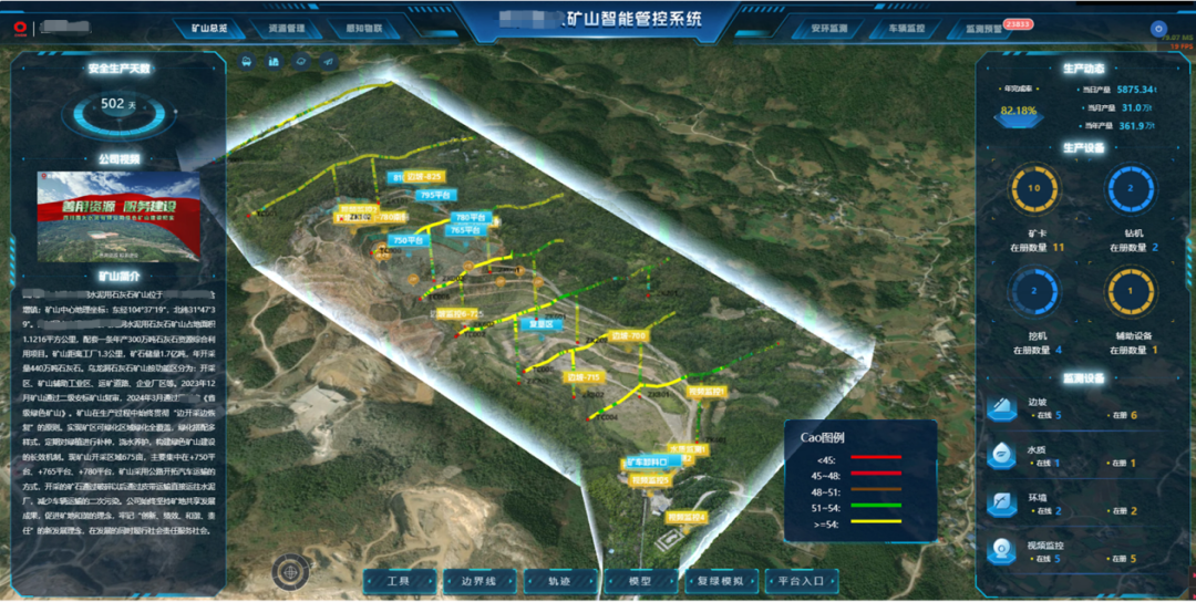 面向露天矿山,,,,,,,,坚持工程化头脑,,,,,,,,研发了一套智慧矿山系统解决计划,,,,,,,,包括地质建模与资源治理、全流程生产管控、智能配矿与卡车调理、智能爆破设计以及无人运输系统等。。。。。解决矿石搭配与质量控制、爆破效果提升与智能铲运等要害问题,,,,,,,,提升矿山实质化清静水平、资源综合使用能力与作业效率,,,,,,,,赋能矿山生产,,,,,,,,解决计划已在多个项目应用。。。。。