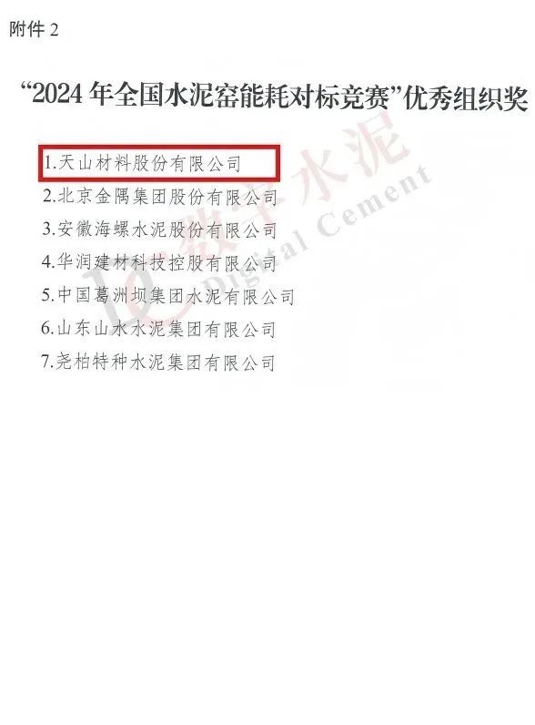 “2024年天下水泥窑能耗对标竞赛”获奖名单