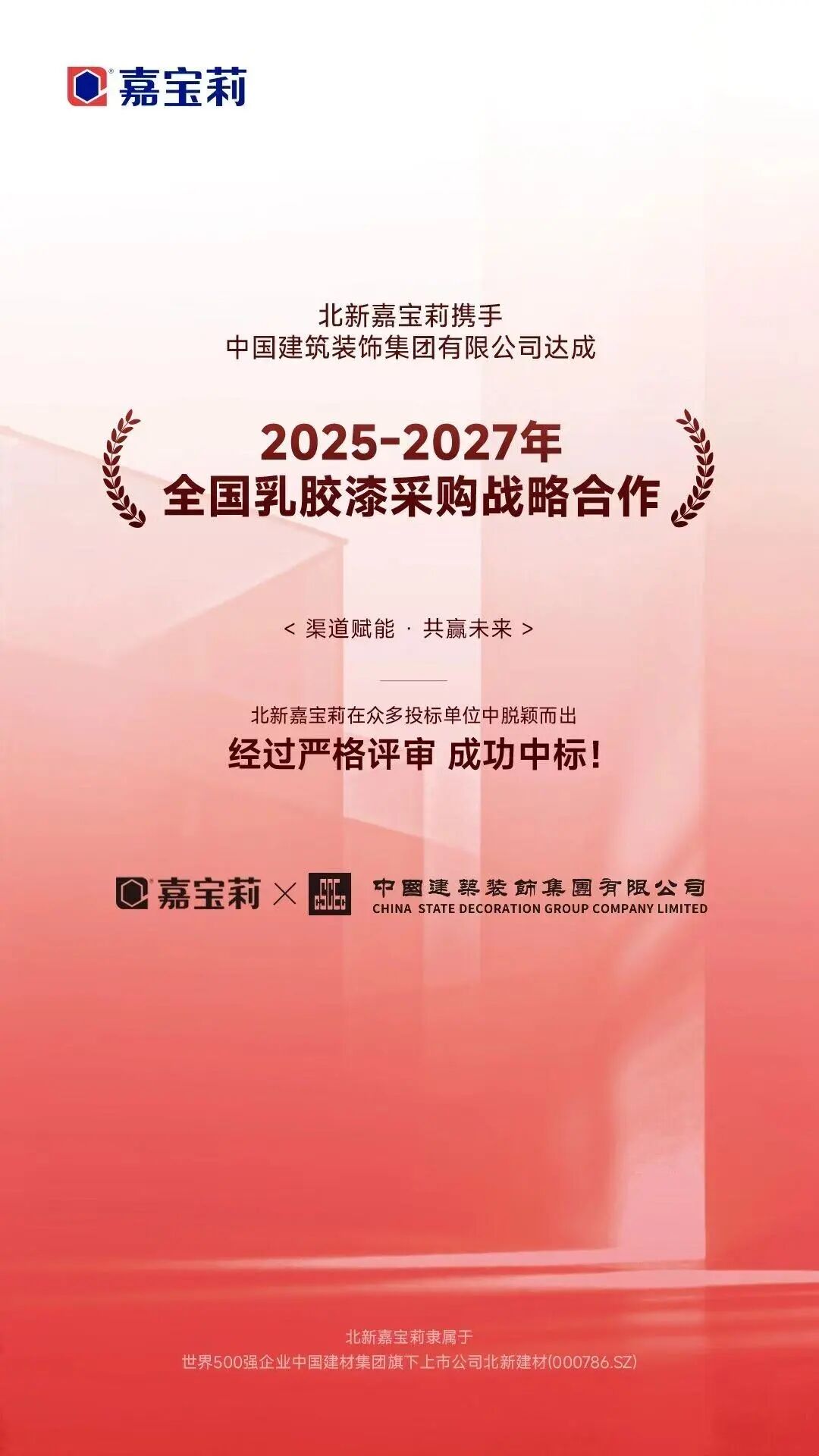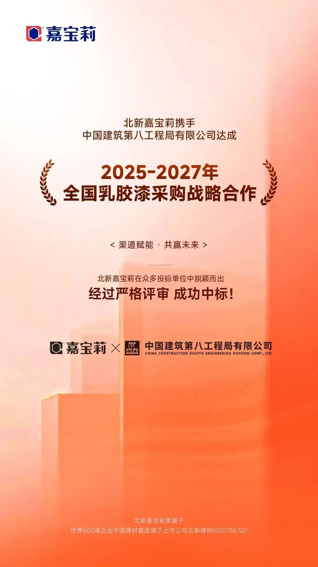 克日,,,,,,北新嘉宝莉中标中国修建装饰集团有限公司、中国修建第八工程局有限公司2025—2027年天下乳胶漆采购。。。。。北新嘉宝莉从众多竞争者中脱颖而出,,,,,,接连斩获头部客户,,,,,,体现了其强盛的综合实力与品牌影响力。。。。。