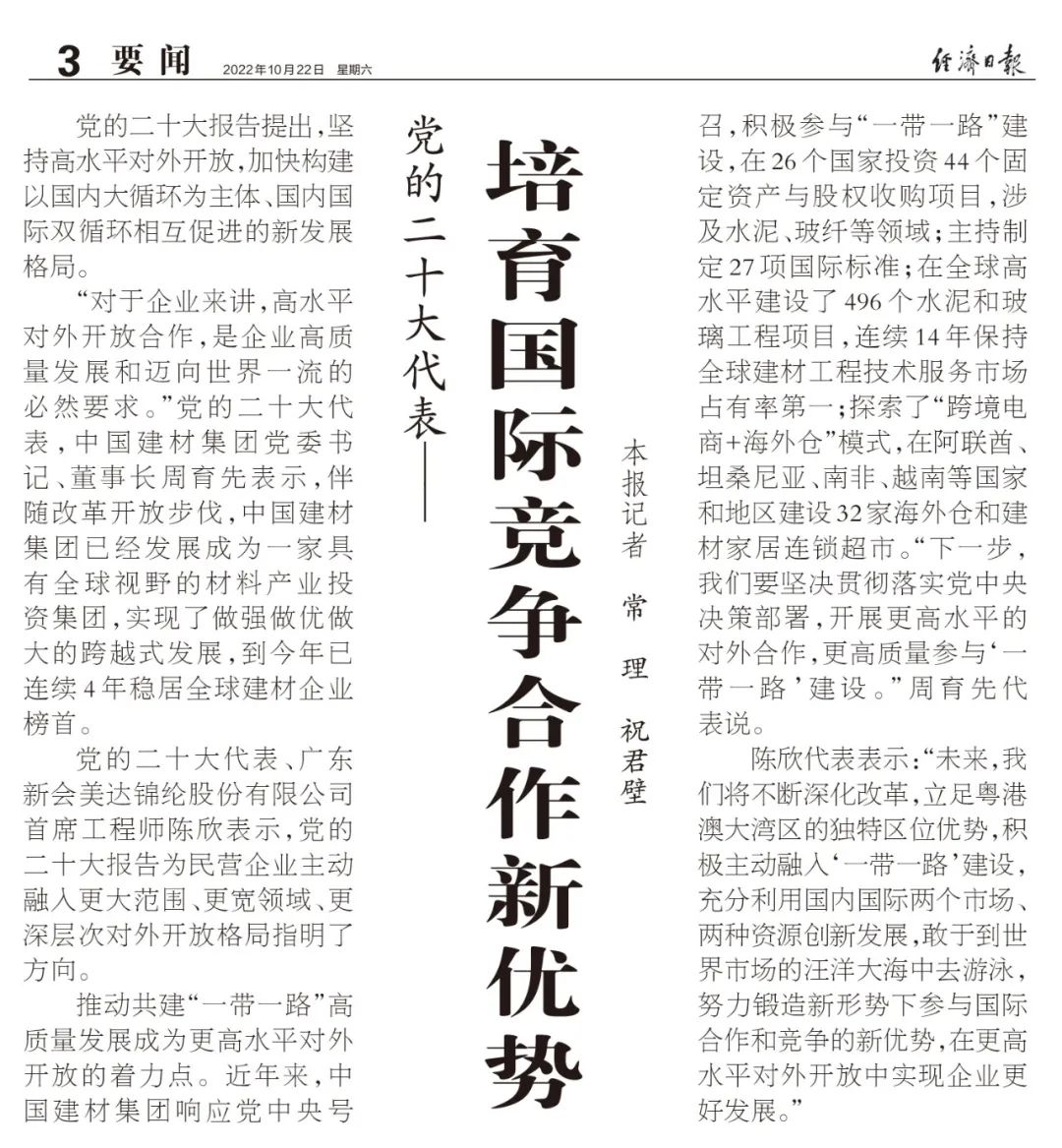 ¶þÊ®´ó´ú±í·Ã̸ | ÉˢÐÂÁ¢Òì¡¢¸ßˮƽ¶ÔÍâÏàÖú£¬ £¬£¬£¬£¬£¬£¬ÊµÏÖ¸ßÖÊÁ¿Éú³¤