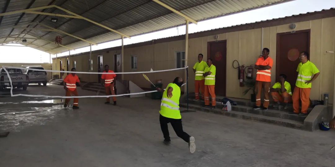 久居异地,,,, ,,,,为纾解现场职员的事情压力与思乡之情,,,, ,,,,营造轻松的气氛,,,, ,,,,我们组织中外员工一起举行篮球、羽毛球和兵乒球等体育运动,,,, ,,,,各人既磨炼了身体也加深了友谊,,,, ,,,,在贫瘠死板的大漠中获得了别样的快乐。。。。 。。