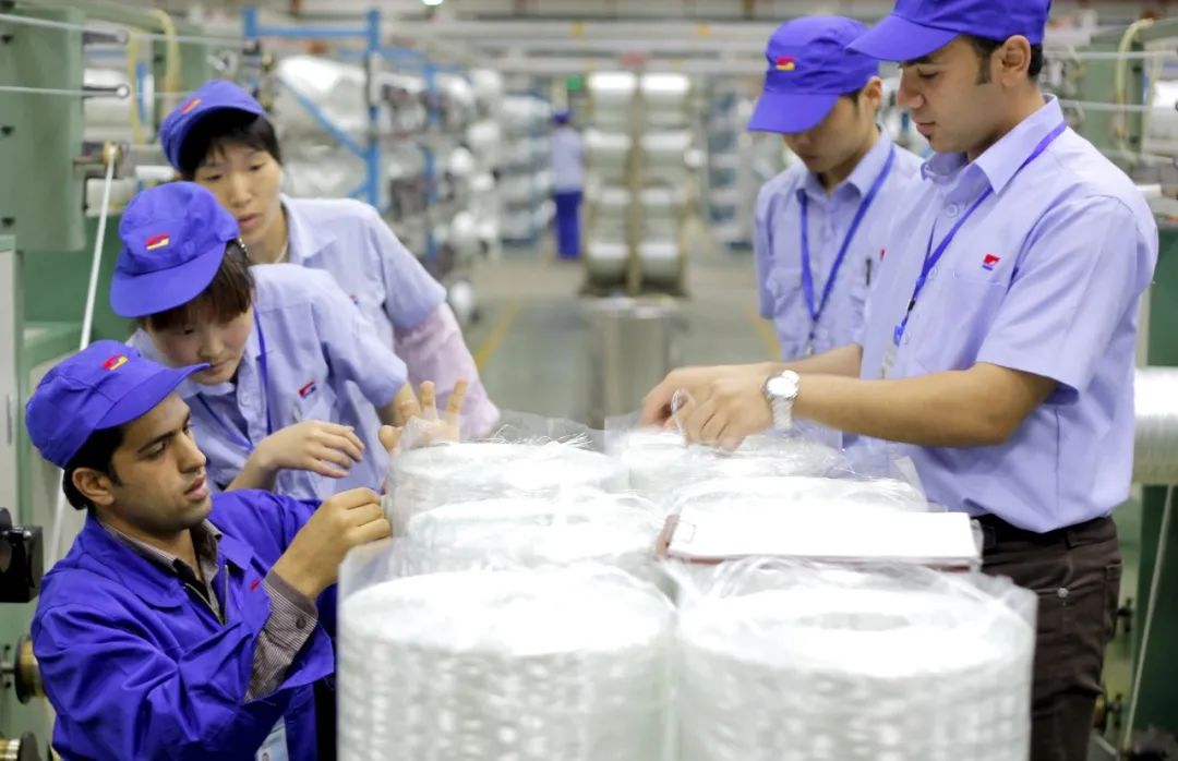 ÖÐÍâÔ±¹¤ÔÚ°£¼°²£ÏËÉú²úÏßÉÏÆäϲÑóÑó