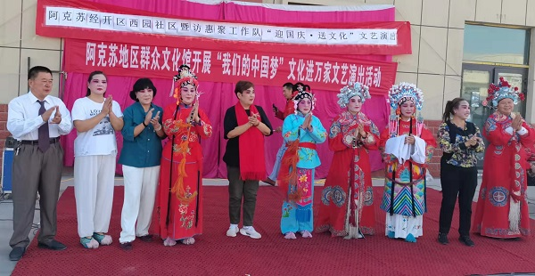党史学习教育中,,,,,,,阿克苏天山公司有关认真同志向导所在支部党员深入联系社区开展“我为群众办实事”主题党日运动,,,,,,,梳理问题、认领问题、协调解决问题。。。。。。国庆节时代,,,,,,,阿克苏市西园社区暨访惠聚事情队开展“迎国庆·送文化”运动,,,,,,,阿克苏天山公司组织员工寓目演出,,,,,,,让员工在事情之余能享受到精彩的文化大餐,,,,,,,不但富厚了员工的精神文化生涯,,,,,,,同时也提升了员工加入多彩多样的文化运动的起劲性,,,,,,,弘扬了中华优异古板文化,,,,,,,有利于进一步提高员工的整体文化素质,,,,,,,助力公司蓬勃生长。。。。。。