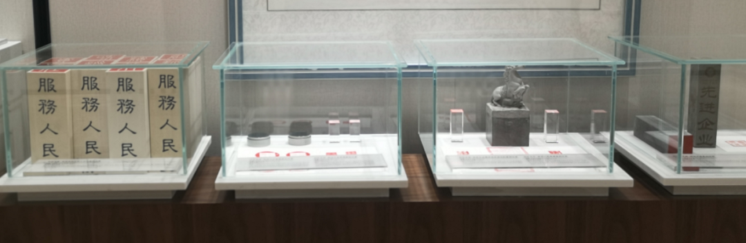 公共篆刻体验中心展示的集团印章质料纪录着时代变迁