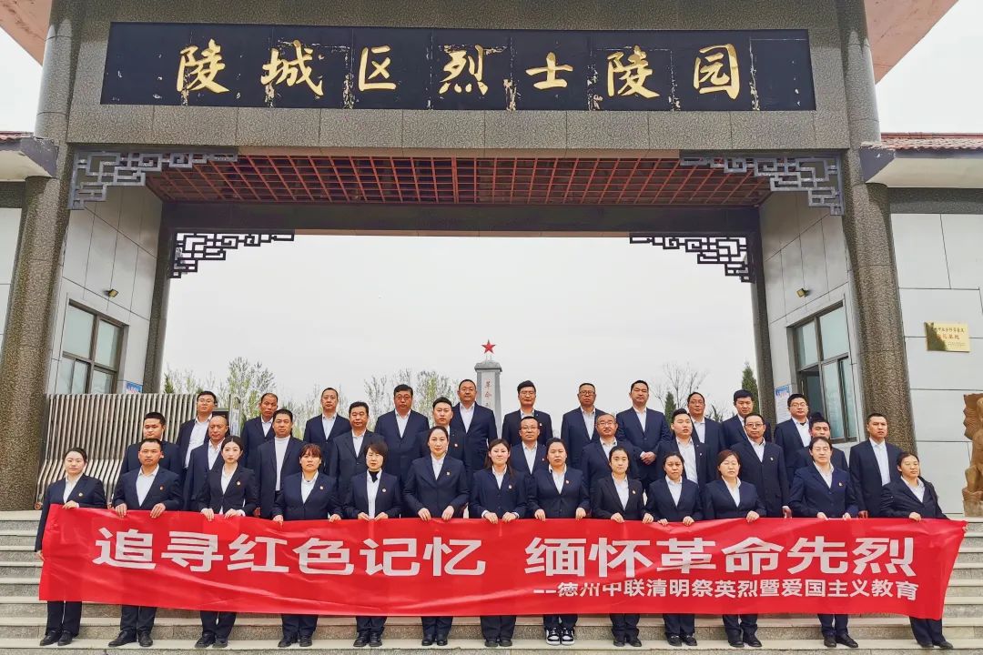 德州中联组织团员青年来到陵城区义士陵园开展清明祭扫。。。。。。在革命义士纪念碑前,,,,,团员青年月表敬献花圈,,,,,全体职员庄重默哀致敬,,,,,配合追思革命义士的英勇事迹。。。。。。