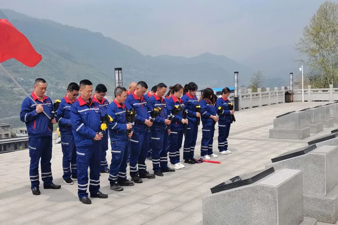 四川安县中联在绵阳市安州区义士陵园组织开展“思念革命先烈 传承红色意志”主题党日运动。。。。。。在庄重肃穆的革命义士纪念碑前,,,,,全体党员整齐列阵向纪念碑三鞠躬,,,,,为义士敬献鲜花,,,,,表达对革命义士高尚的敬意和深深的纪念。。。。。。