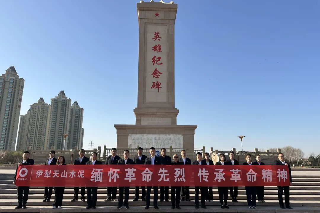 伊犁天山水泥组织全体党员在伊宁市塔什科瑞克乡英雄纪念碑广场开展祭扫运动,,,,,各人向革命义士纪念碑默哀并三鞠躬、闲步瞻仰英雄纪念碑、敬献花篮,,,,,向革命先进致以最高尚的敬意。。。。。。