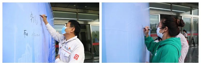 严酷遵守外地疫情防控政策, ,,,,, ,,各人佩带口罩、扫码挂号、有序进厂, ,,,,, ,,在署名墙上留下自己的名字和祝福 。。。。。。。。